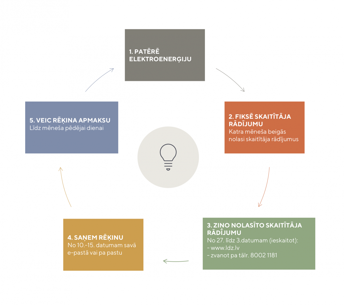 - Rēķina saņemšana - rēķinu par nodoto patēriņu saņemsiet no 10.līdz 15.datumam uz reģistrēto e-pasta vai pasta adresi.