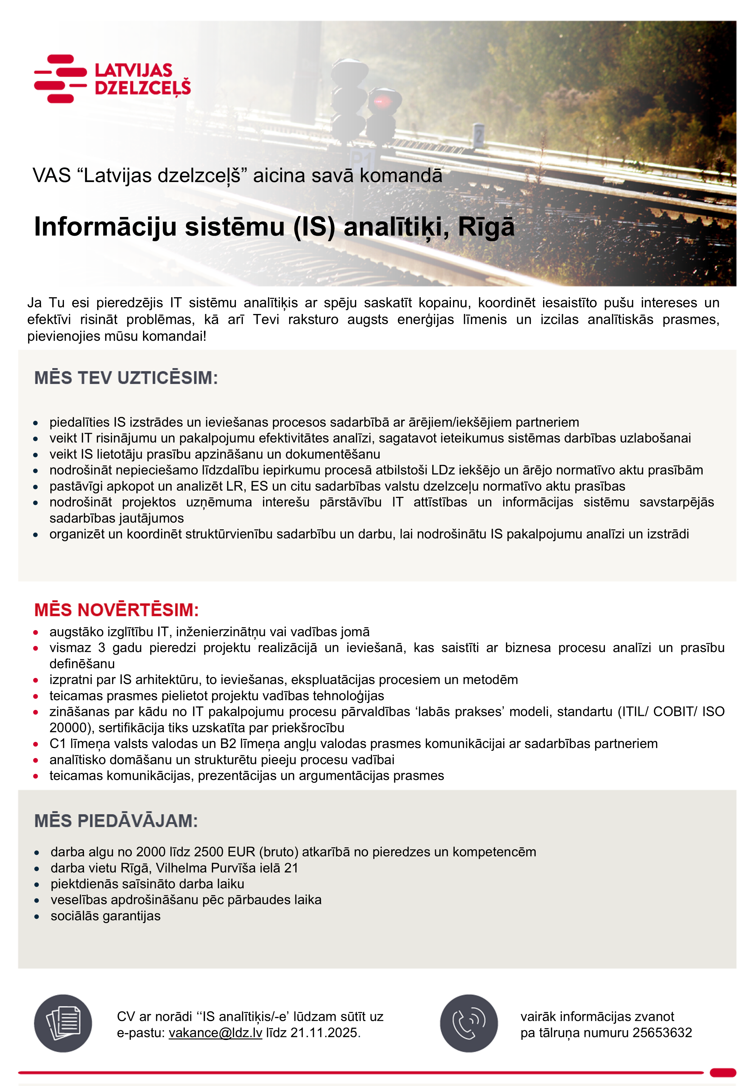 Informācijas sistēmu (IS) analītiķis/-e Rīgā